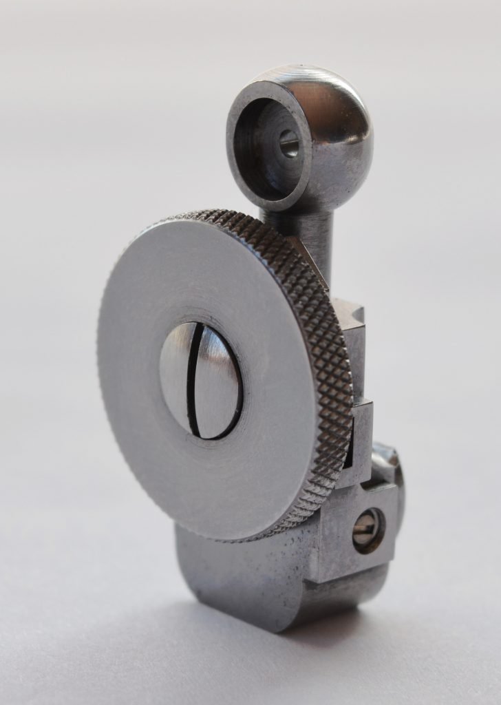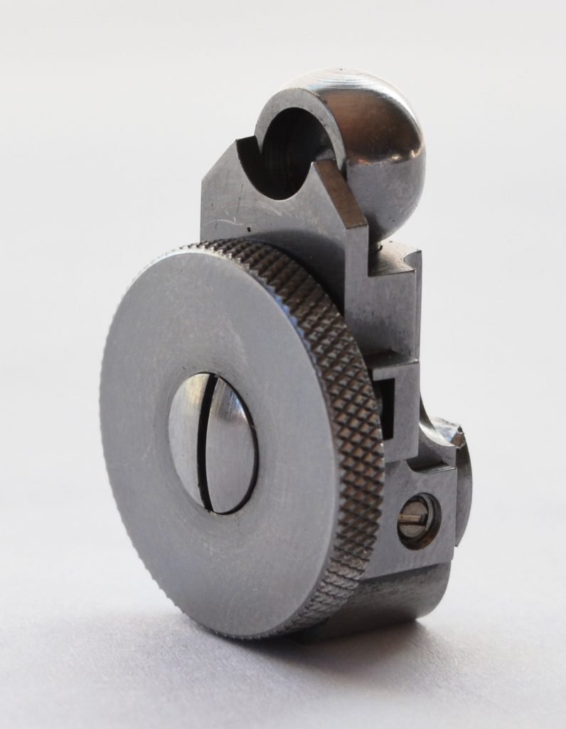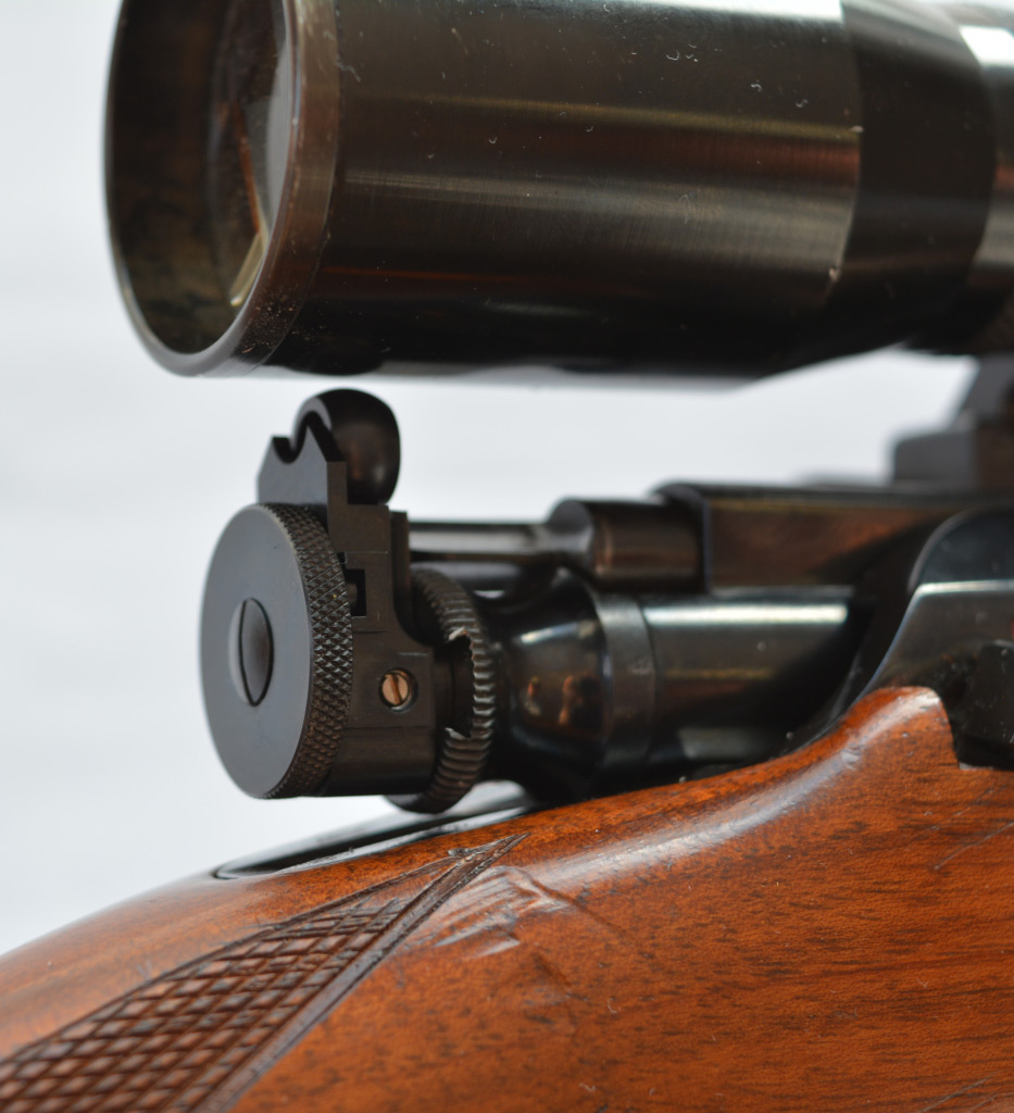 The Dangerous Game model eliminates the need to choose between a scope and a peep sight. After many requests, we developed a low profile cocking piece sight that can be used while the scope is still attached.
